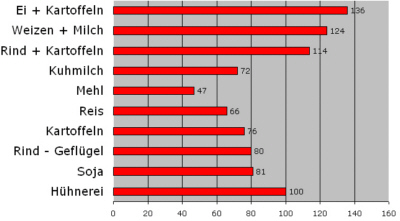 als bei den unterschiedlichen Angaben der Tabellen zur biologischen Wertigkeit.